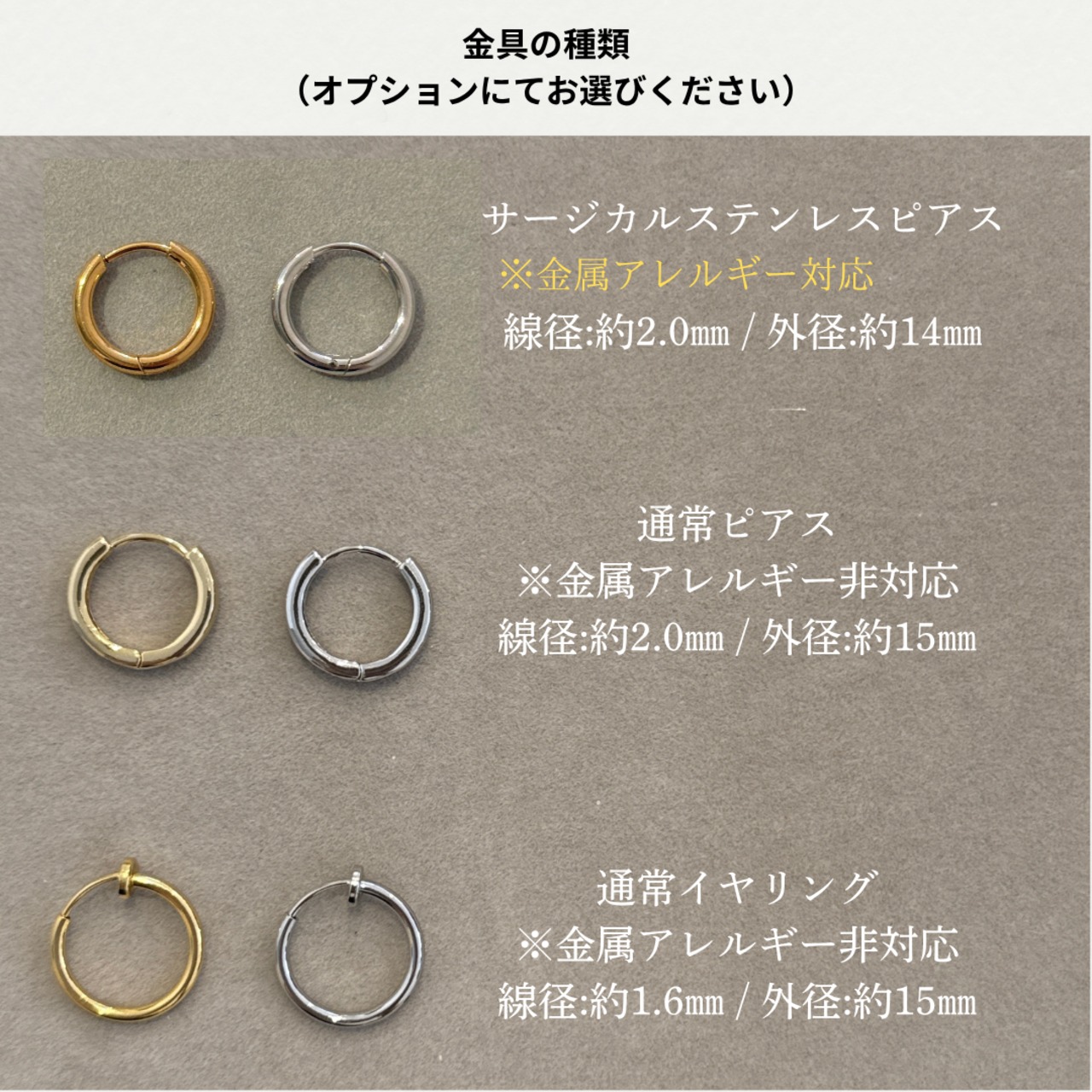 ピアスのみ、金属アレルギー対応金具をご用意しております。ご希望の方はオプションにてお選びくださいませ。(画像10枚目参照)