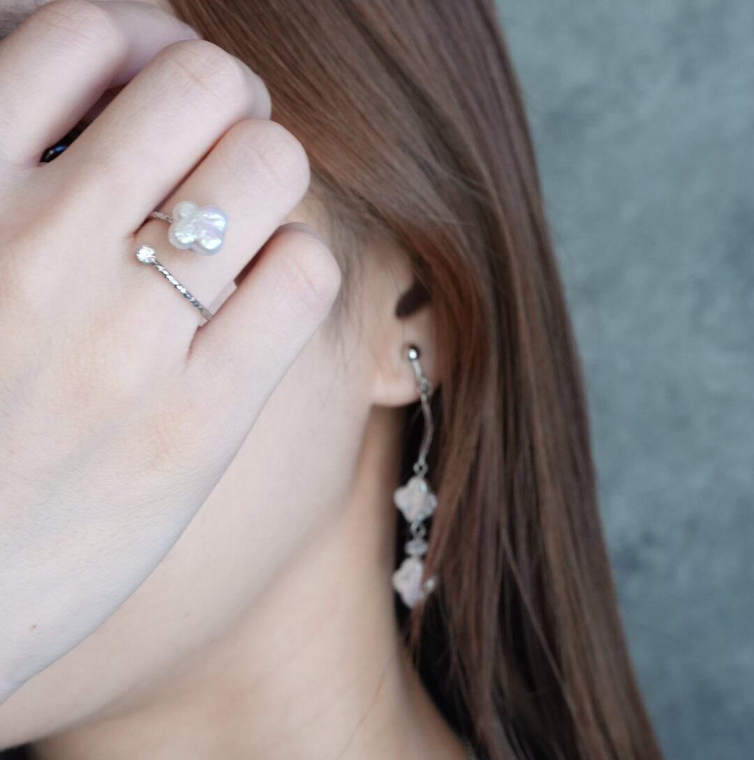 花のように形づくられた淡水パールを使用したアクセサリーシリーズ