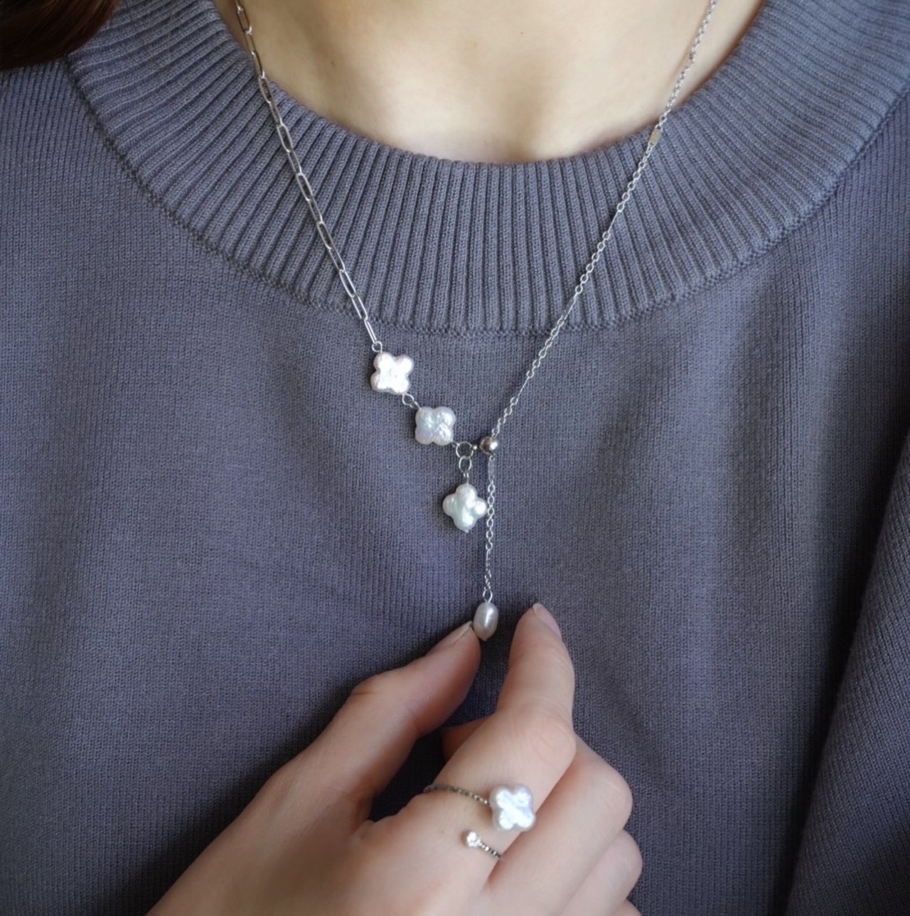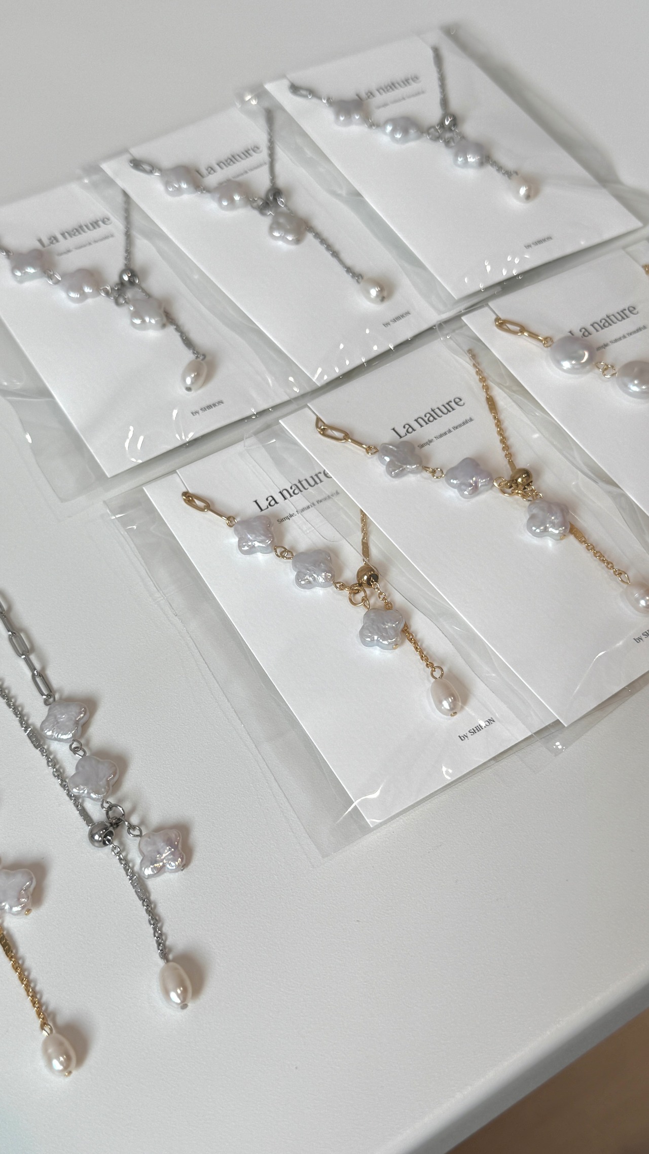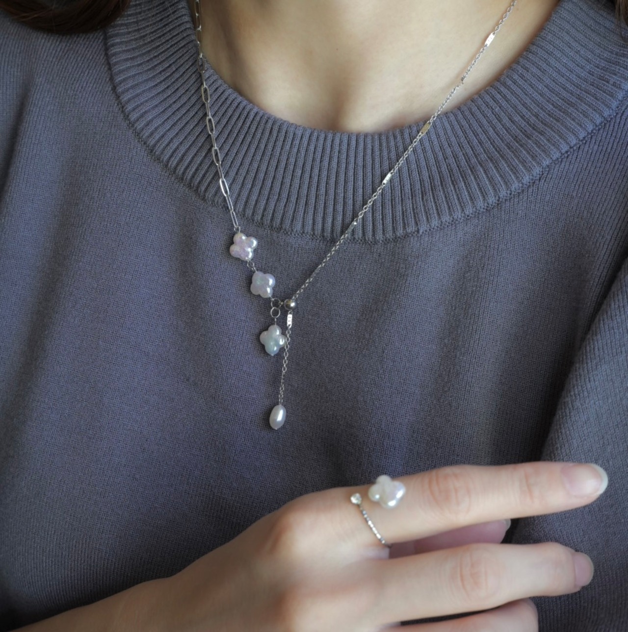 花のように形づくられた淡水パールを使用したアクセサリーシリーズ