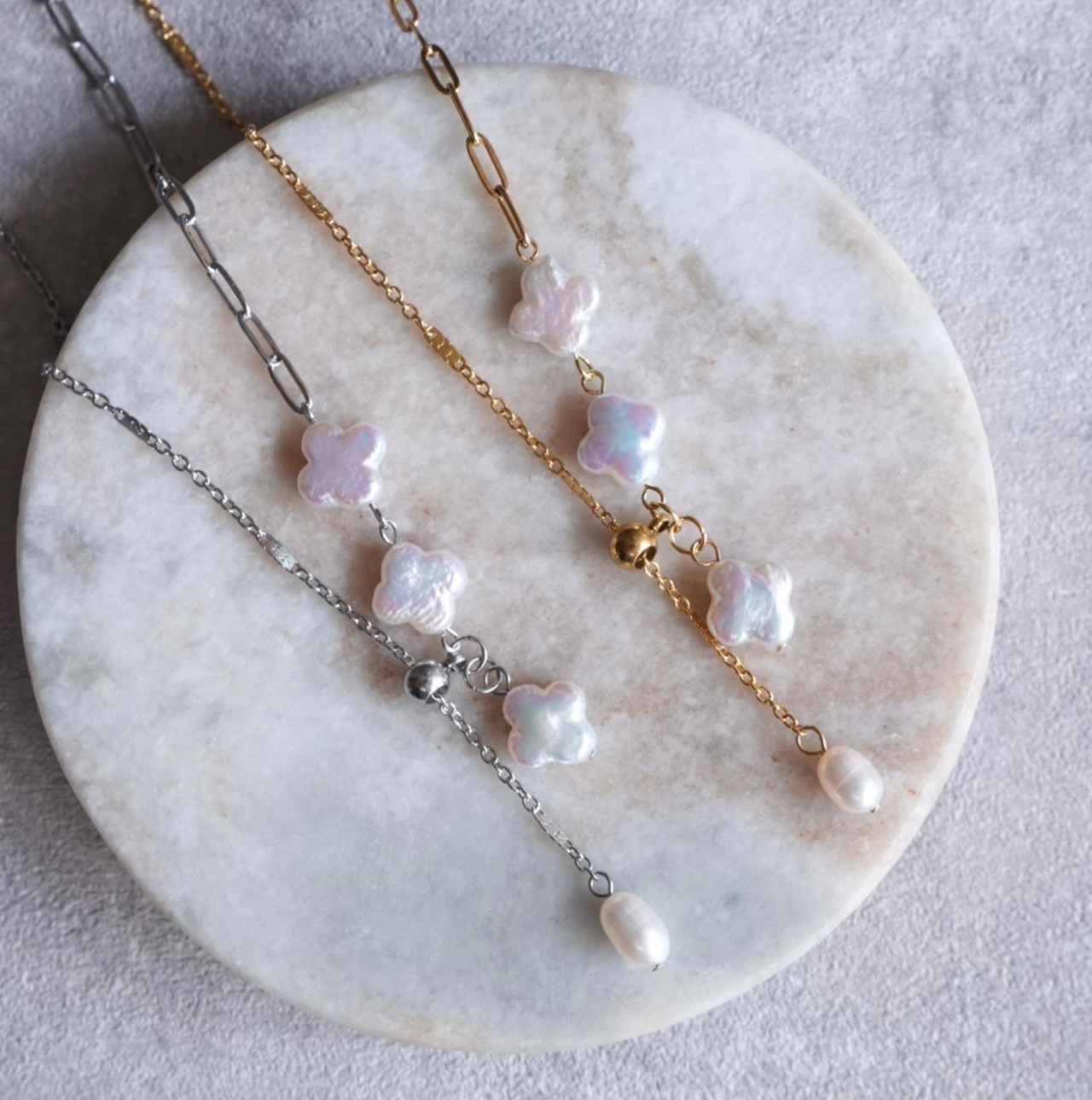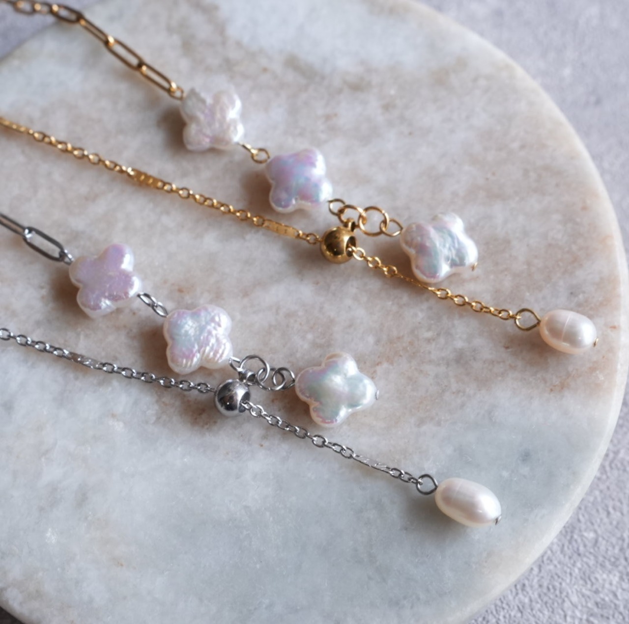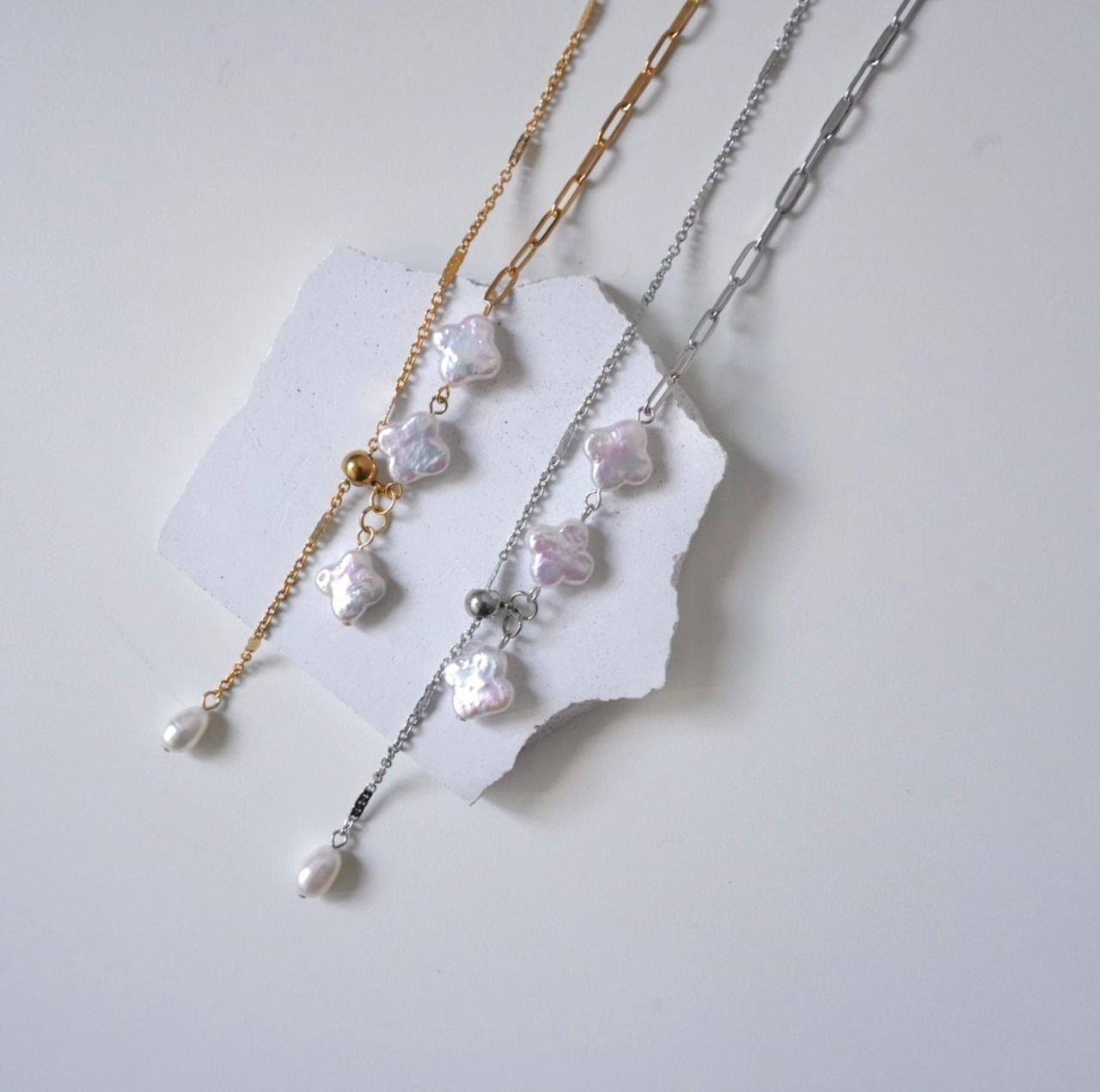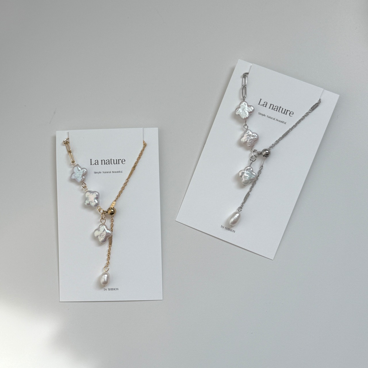 花のように形づくられた淡水パールを使用したアクセサリーシリーズ
