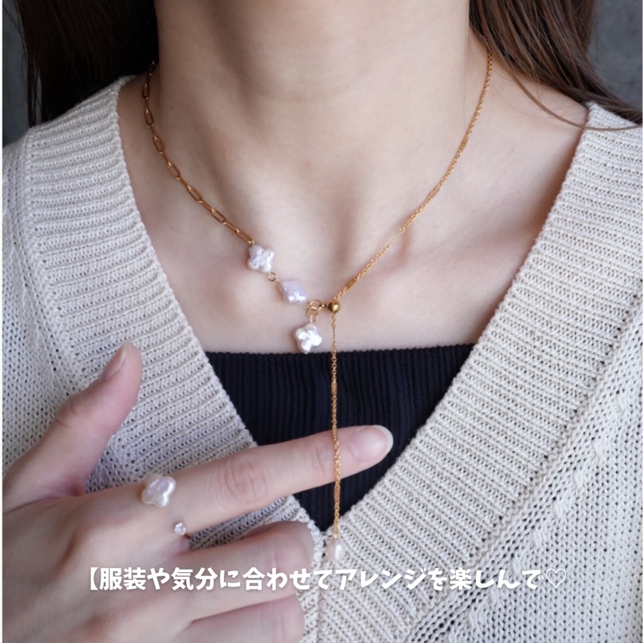 首元に沿わせて上品に、少し長めにして抜け感を出したりと、その日の気分に合わせて楽しめます♩