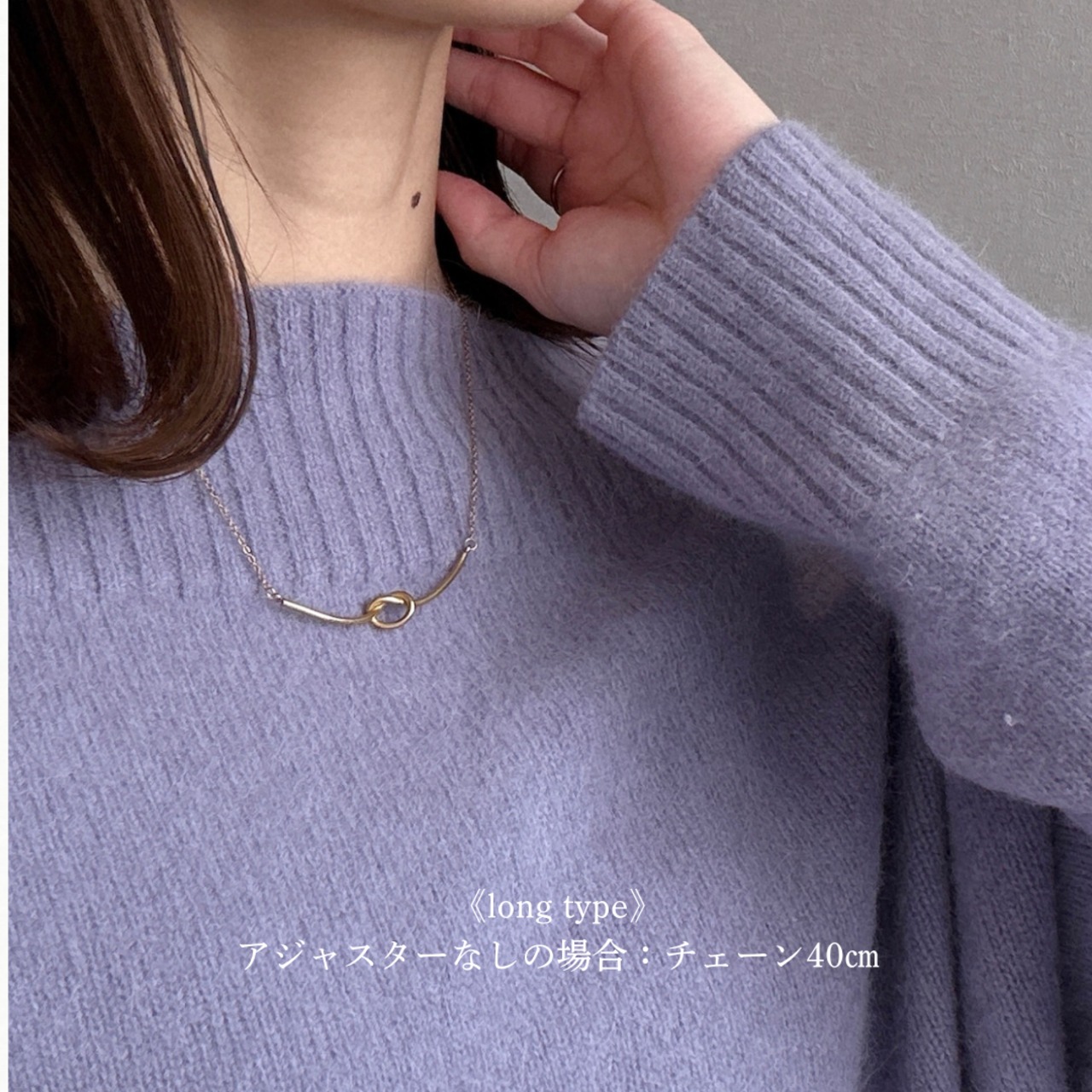 ◾️ ロングタイプ:ゆったりと着けたい方におすすめ。首元に余裕があり、シンプルに1本で楽しむのはもちろん、タートルネックや襟付きの服の上からでもバランス良く着けられます。