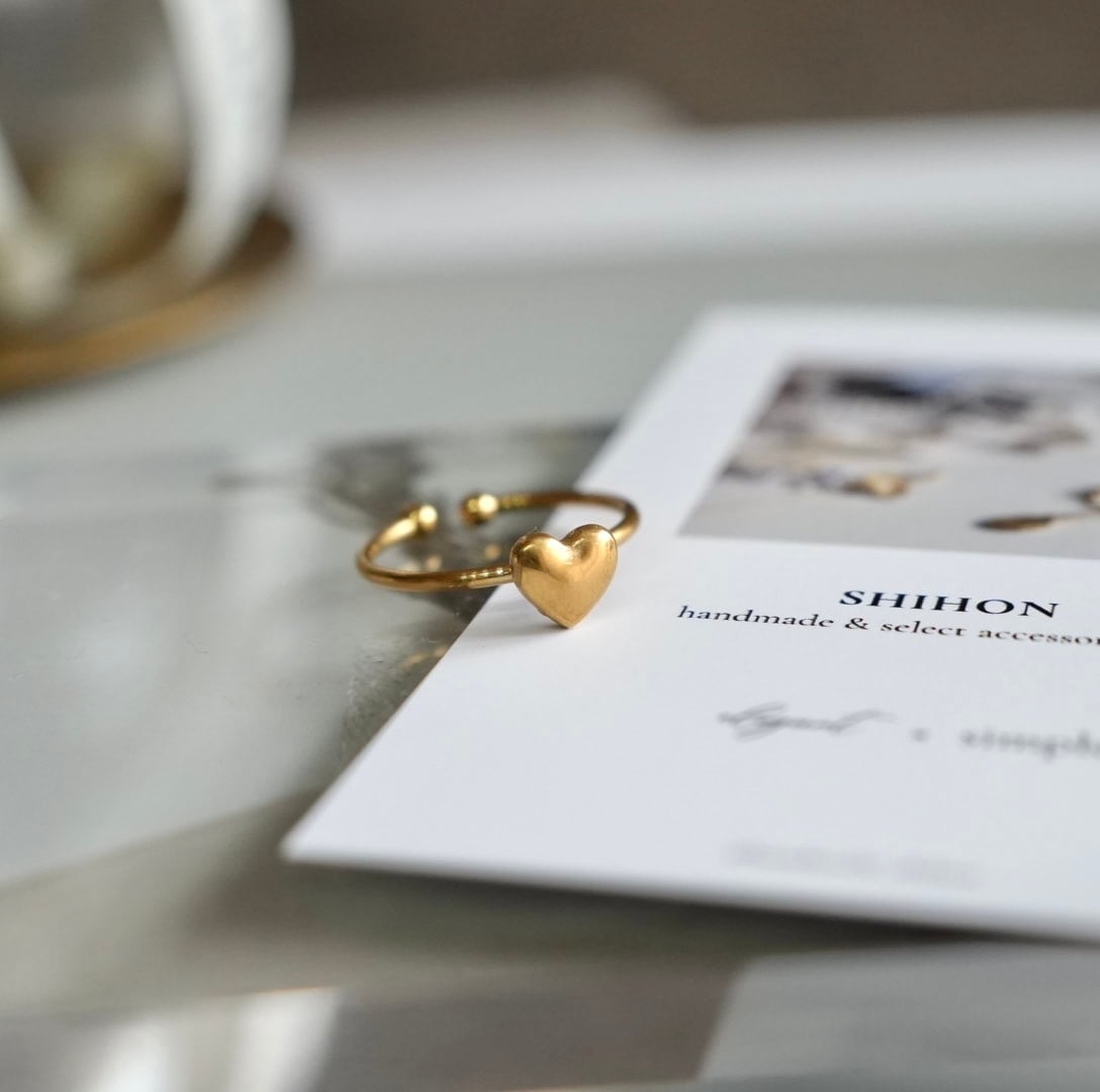 ぷっくりとしたハートデザインと細身のラインが、指先を可愛らしくも上品に引き立ててくれます。