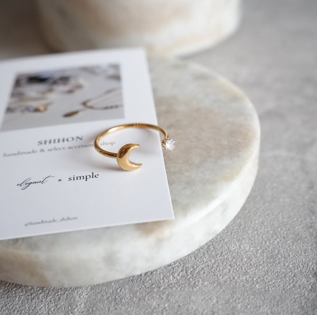 ※月の形の特徴で装着の際に指に当たる場合がございます。ご理解の上ご購入頂きますようお願い致します。