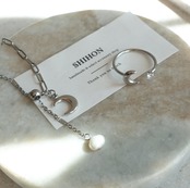 slide ball necklaceのチャーム月と、人気のmoon ring